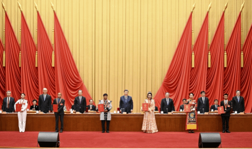 9月27日,全国民族团结进步表彰大会在北京举行。这是习近平等为受表彰的模范个人和模范集体代表颁奖。新华社记者 鞠鹏 摄