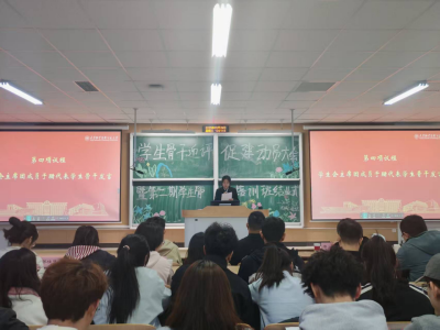 院学生会主席团成员于珊代表学生骨干表态发言。她表示,每名学生都是本科教育教学审核评估的参与者,更是受益者。作为学生骨干,要以“从我做起、向我看齐”的态度,带头熟知“应知应会”的内容、带头投身学风建设、带头参加各类科技文化体育活动、带头做文明有礼大学生,以实际行动为迎评促建助力。