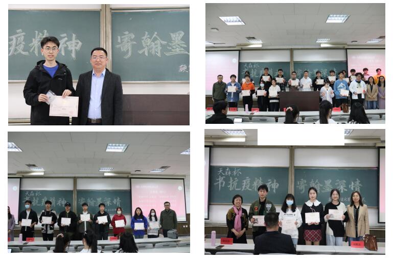 学院领导和老师为获得特等奖、一等奖、二等奖和三等奖的同学们依次颁发证书,获奖代表上台发言。特等奖获得者机制2112班马靖皓分享了自己八年的练字经历,从“坐不住写不好”到今天板书上呈现的遒劲有力的书法,是他对热爱和坚持的最好写照,也为机制的同学们树立了良好的榜样。未获奖的同学争相表态,从现在起认真练字并接受周围同学的监督,大家互帮互助,逐步扩大练字团体。之后,在赵老师的带领下,全场同学齐声边唱边做写好中国字手势舞。