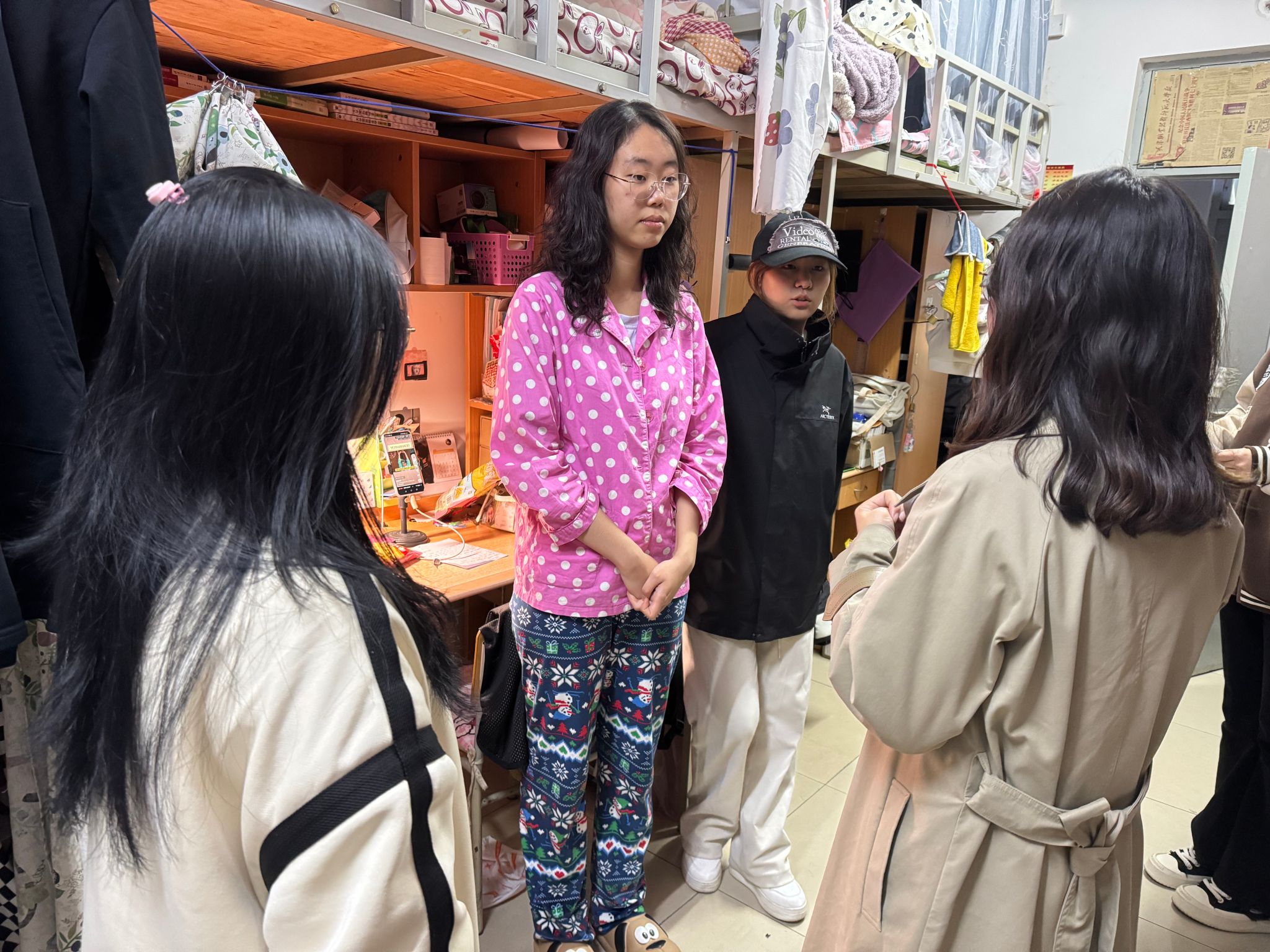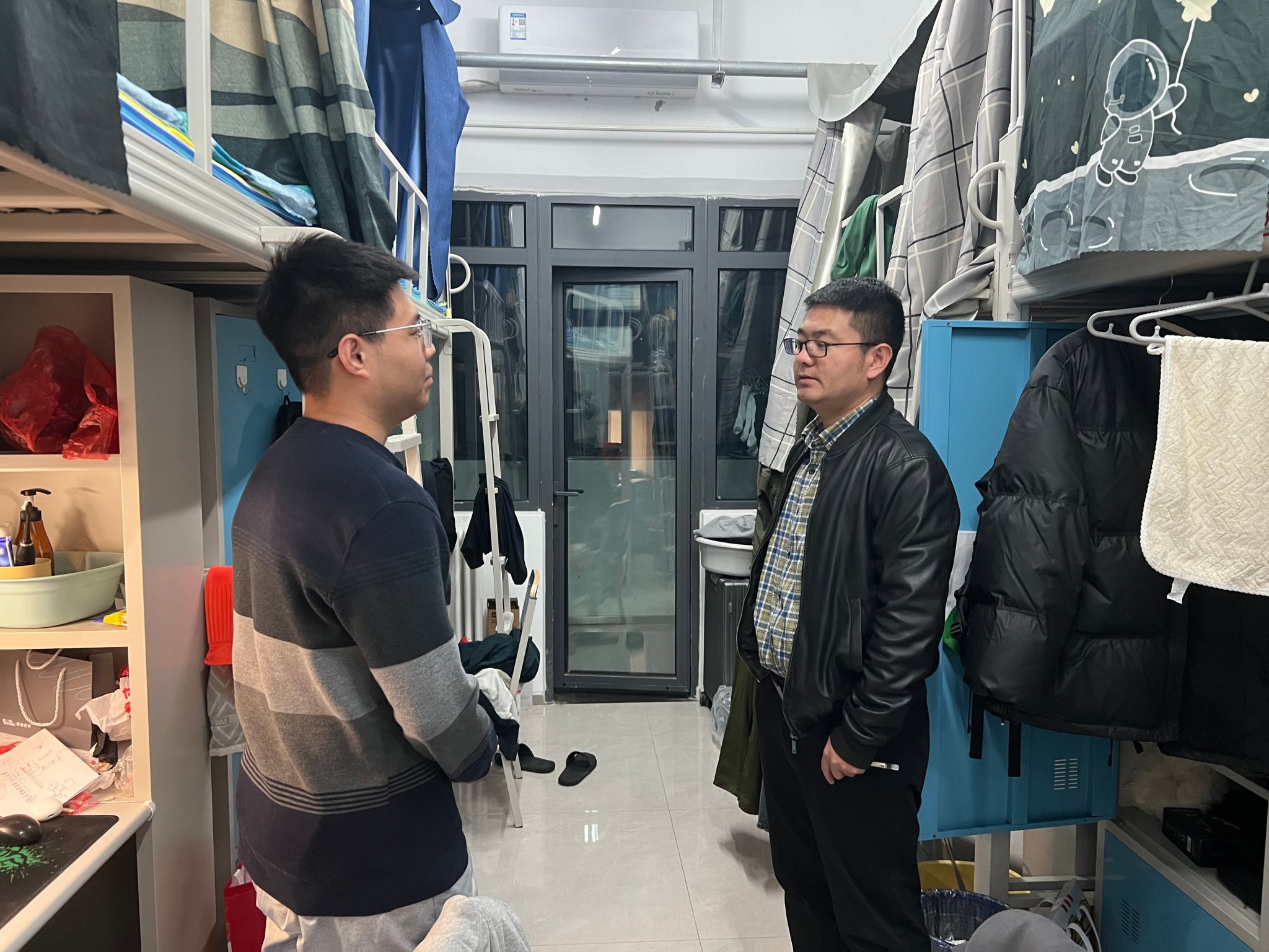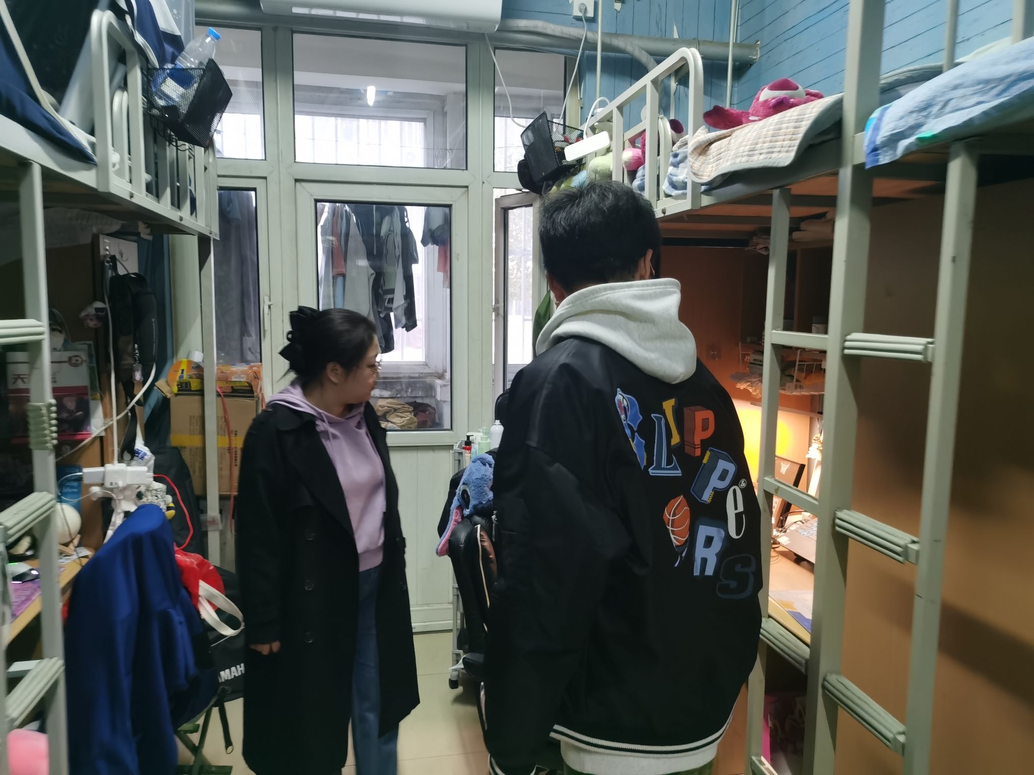 会后,韩树明和辅导员老师带领辅导员助理们迅速行动起来,深入到学生宿舍逐一进行安全排查。了解学生学习生活情况,重点排查学生宿舍违规电器、违禁物品、安全隐患和环境卫生等问题,在检查过程中,耐心地向同学们集中宣讲消防安全的重要性,提醒同学们要加强宿舍学风建设,遵守宿舍管理规定,注意防火、防盗,做好宿舍卫生和个人卫生,增强自我保护意识。