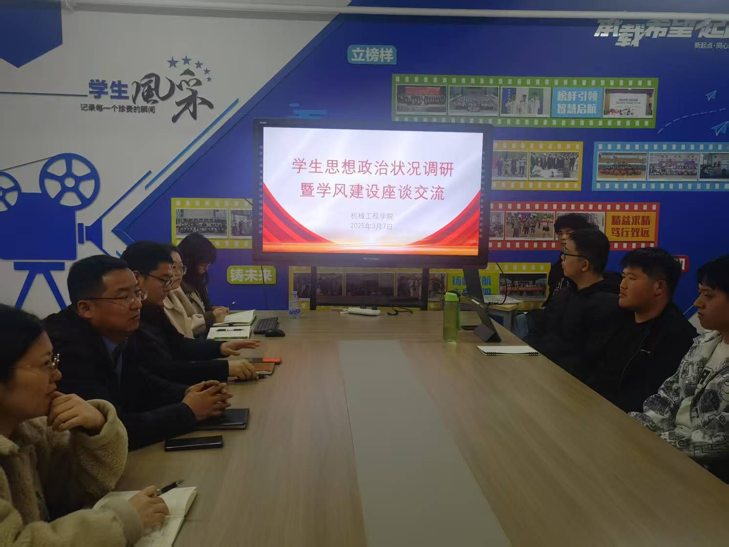在思想状况调研环节,师生们交流了当前学生群体普遍关注的全国“两会”召开、《教育强国建设规划纲要(2024-2035年)》发布、DeepSeek人工智能软件的应用、学校召开二届党委第十三次全体会议部署2025年重点工作等热点话题,以及与学生密切相关的学业压力、职业规划、心理健康等问题。