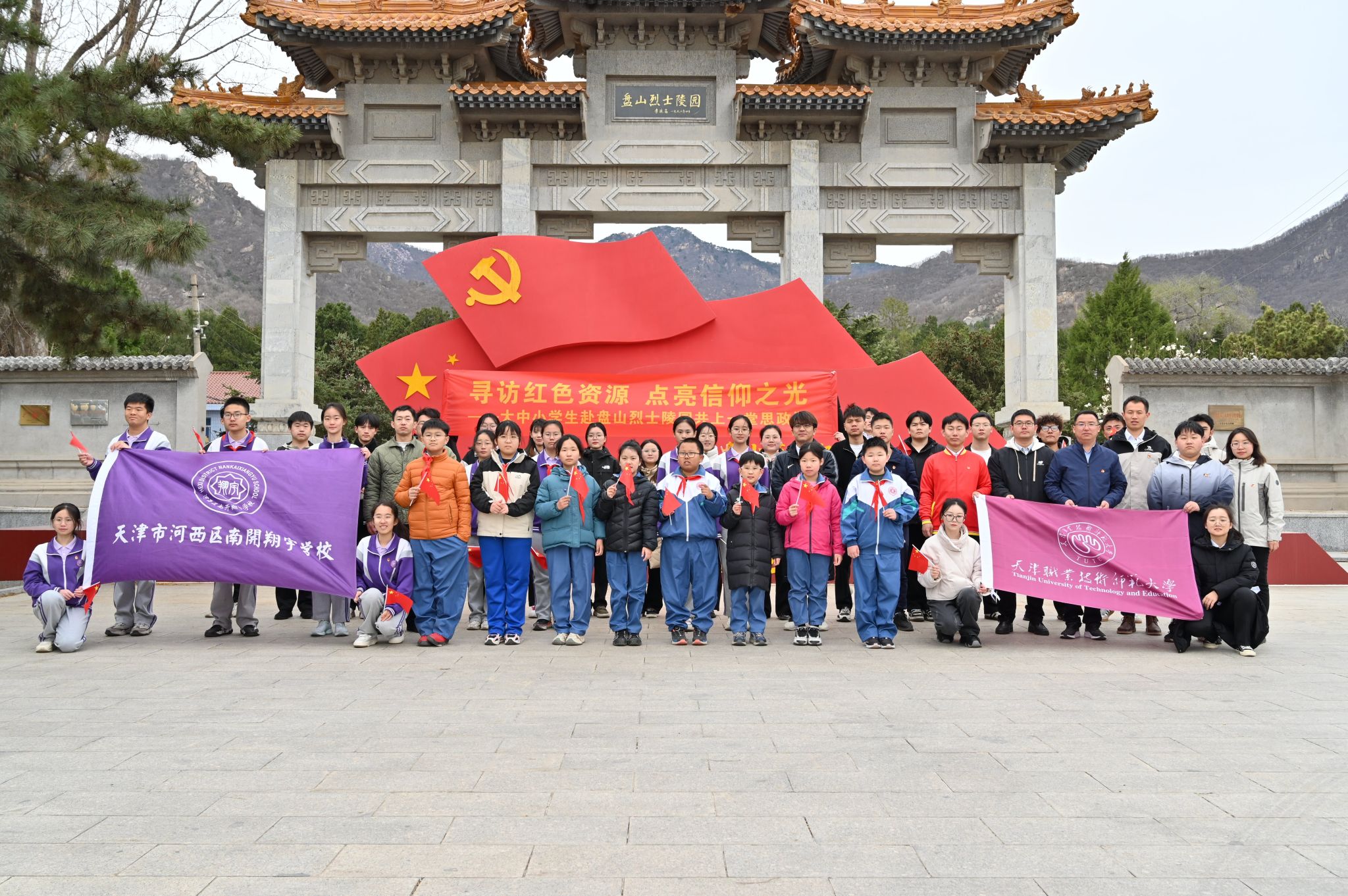 在纪念中国人民抗日战争暨世界反法西斯战争胜利80周年之际,清明节前夕,3月27日,伟德国际victor·1946源自联合天津市河西区南开翔宇学校、伟德国际victor1946附属小学共50余名师生,沿着“蓟州烽火”红色资源体验线路,前往蓟州区盘山烈士陵园开展“大中小学生赴盘山烈士陵园共上一堂思政课”活动,引导大中小学生赓续红色血脉,点亮信仰之光。