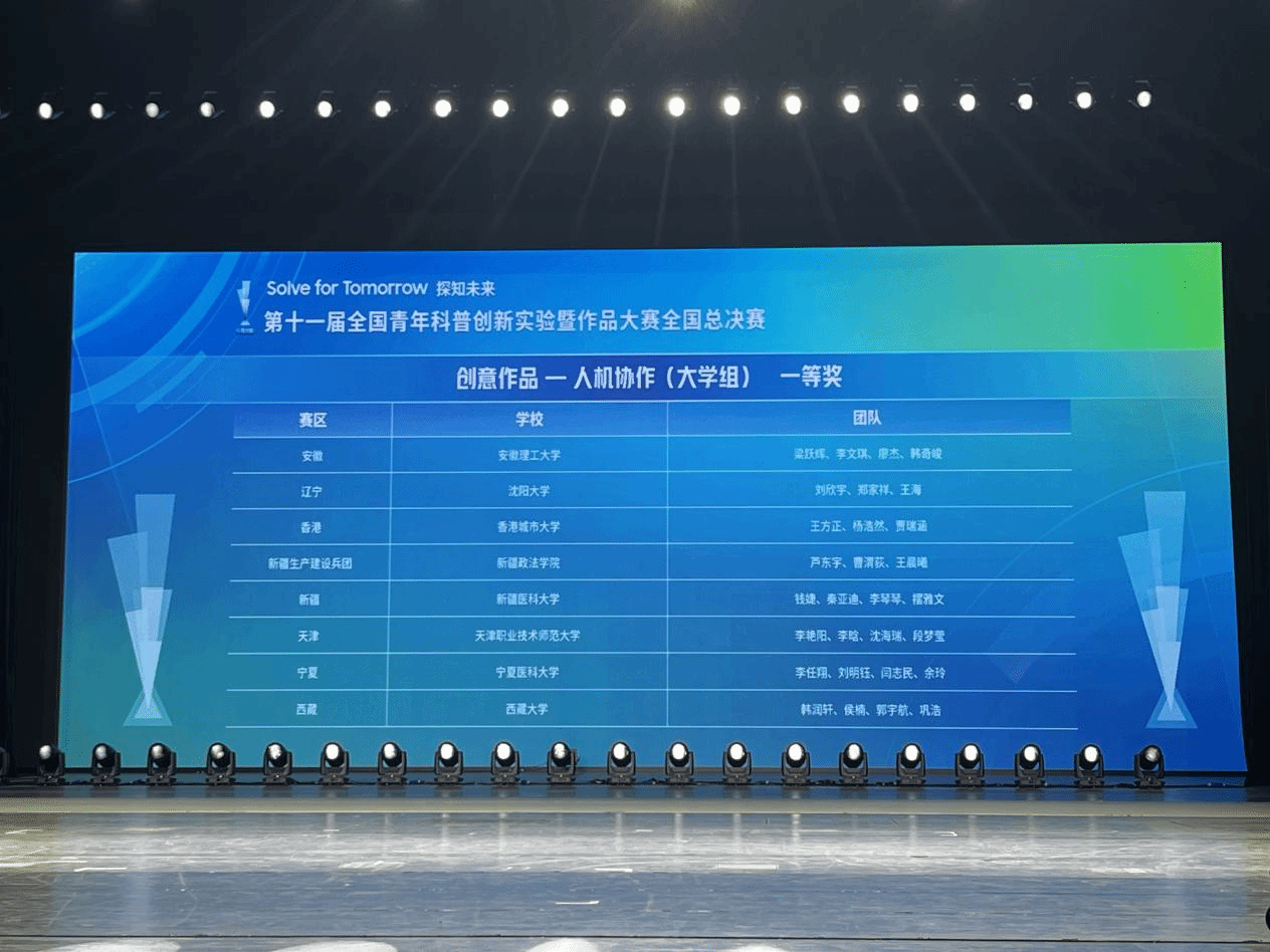 7月28日至7月31日,第十一届全国青年科普创新实验暨作品大赛全国总决赛在安徽合肥举办。本届大赛吸引全国5000余所大中专院校及中学的近18万名学生参与,经过32个赛区的层层选拔,仅270支队伍晋级全国总决赛。我校代表队凭借扎实的创新实力突出重围,最终斩获一等奖,并因作品的精彩呈现获得“最佳展示奖”。