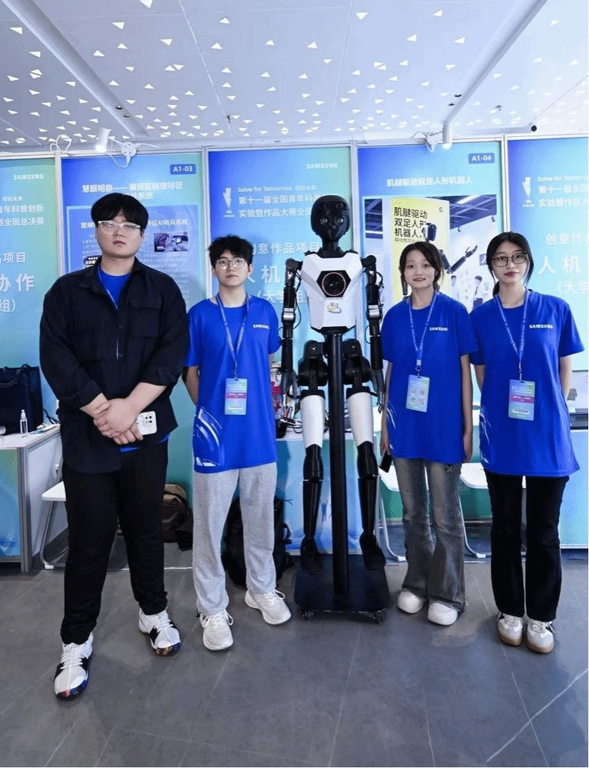 决赛现场,我校选手聚焦“人机协作”命题展开创作,设计的“肌腱驱动双足人形机器人”通过模拟人体肌腱传动原理优化运动灵活性,在实际场景应用中实现了精准的动作响应。团队从理论构想到模型搭建,从技术原理分析到现场展示呈现,全程展现出扎实的科学知识基础和出色的动手实践能力,最终凭借稳定发挥和创新表现脱颖而出。