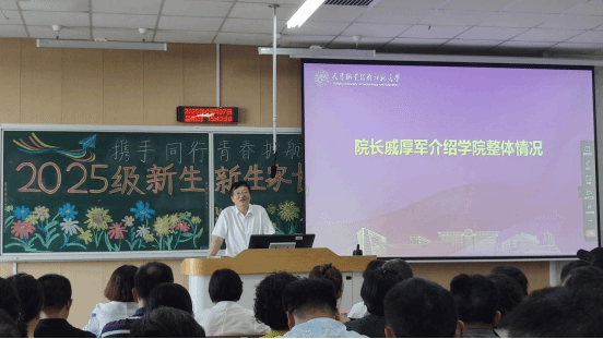 会上,与会领导、老师及新生家长共同观看了学校学院宣传片。戚厚军对各位家长的到来表示热烈欢迎,并从专业特色、师资力量和人才培养等方面介绍了学院的整体情况。赵巍就课程体系、学分要求等教学安排作了详细解读,帮助家长清晰地了解学生在校的学业规划。刘娜围绕“家校协同育人”方面作工作提示,她结合详实案例,提醒家长关注学生在学业、安全、心理和人际交往等方面的挑战,并强调了诚信教育的重要性。2025级新生辅导员围绕学生管理等方面与家长沟通交流,同时,学院领导老师对家长们关心的专业发展、考研深造等问题进行了耐心细致的解答,现场气氛热烈。