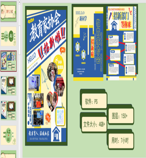 此外,教育家协会宣传部陈雨洁、语言交际部李家诚、办公室周文浩三位同学分享了如何使用AI制作海报、撰写文案、制作PPT等内容。他们结合亲身实践,生动展示了AI如何从工具演变为伙伴,深刻改变传统学生工作的模式与效能。