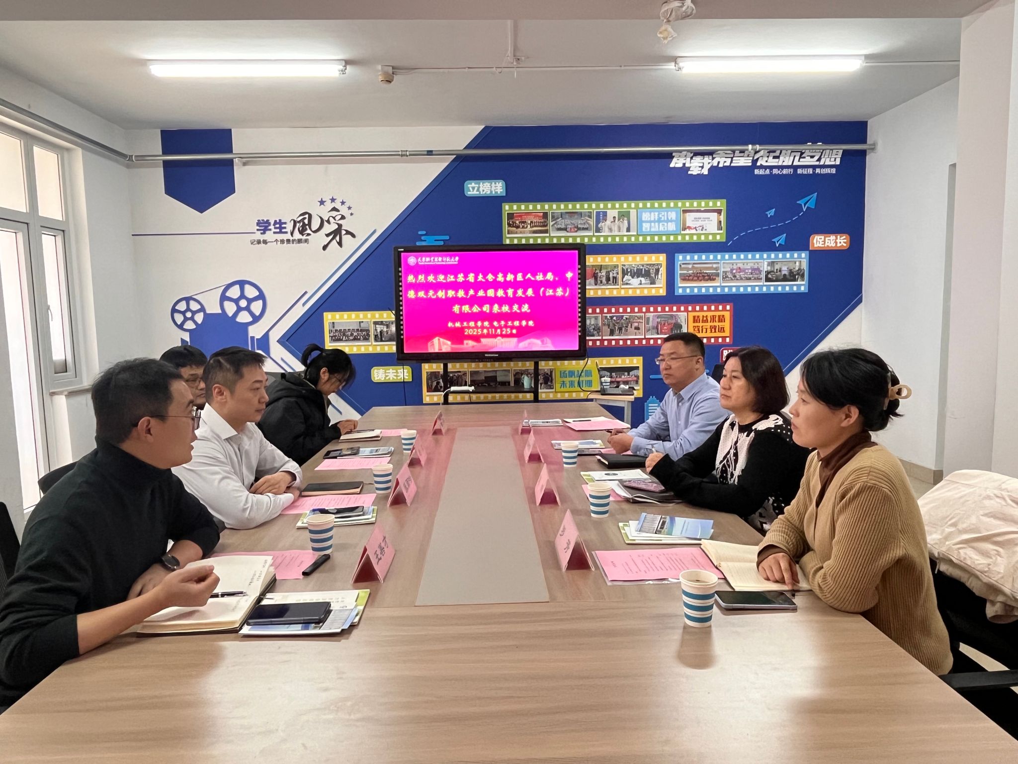 江苏省太仓高新区人社局代表详细介绍了江苏省太仓高新区的发展现状及未来的发展方向,并详细讲述了太仓高新区的区位优势、引才政策和人才服务保障等。产业园代表介绍了双元制教育合作框架,并向大家展示了中德双元制职业教育产业园的建设概况、功能定位及发展愿景。他们表示将始终秉持“成就人才就是成就未来”的理念,着力构建全方位的人才成长生态,希望天职师大的技能型人才能与太仓高新区并肩同行,共同推动“中国智造”的转型升级,为国家培养更多“大国工匠”。
