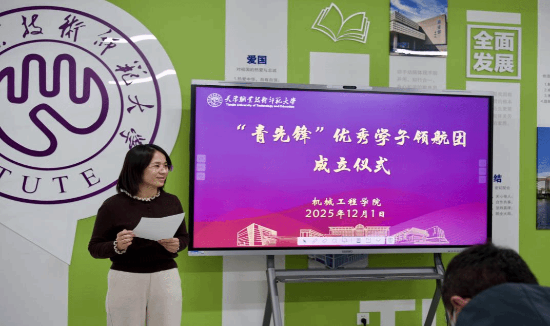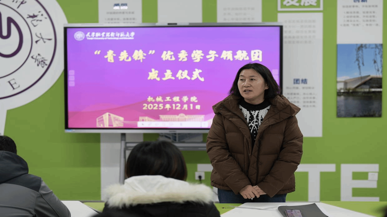 接下来,仪式进入授聘环节。学院正式宣布“青先锋”优秀学子领航团成立,并为18 名入选成员颁发聘书。据悉,这18名成员均在国家奖学金、天津市人民政府奖学金、天津市优秀学生、优秀学生干部等重要评选中脱颖而出,是学院在学习成绩、综合能力与责任担当方面的标杆代表,具备丰富的学业指导、竞赛实践和成长规划经验。