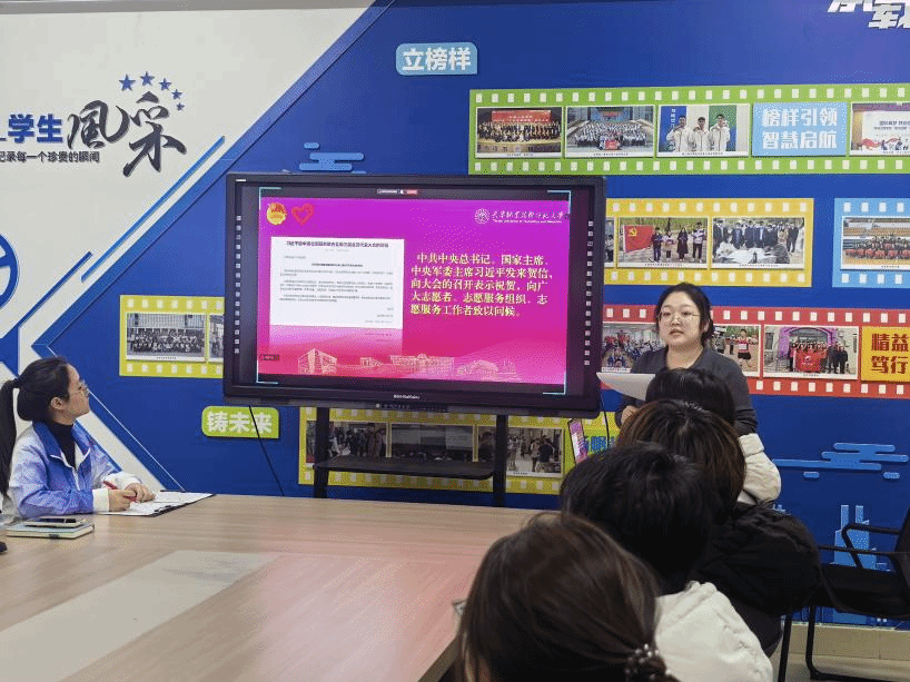 学院辅导员任畅以“贺信精神与高校志愿服务实践”为主题,带领参会人员认真学习贺信原文。她结合学院志愿服务工作实际,通过生动案例,阐述青年志愿者如何将贺信精神融入日常服务,明确新时代青年志愿服务的实践方向与路径。
