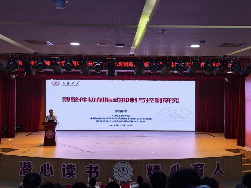 宋清华做了题为《薄壁件切削振动抑制与控制研究》的学术报告。他详细地介绍了高端装备复杂薄壁零件的高性能加工的研究背景与意义、研究现状与趋势、研究进展及应用,最后从面向薄壁零件的切削颤振孪生抑制技术等方面进行了总结与展望。