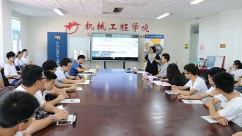 来自台湾的Autodesk学生社团项目经理严青霞做了题为《设计领创未来》的精彩演讲,结合台湾学生的设计案例讲述了设计3.0时代的特征、发展等内容,增强大家的学习兴趣与专业认同。工业设计系专业教师宋培培为同学们讲解了新的软件技术与行业发展趋势、云端计算与协同设计等内容,获得同学的好评。